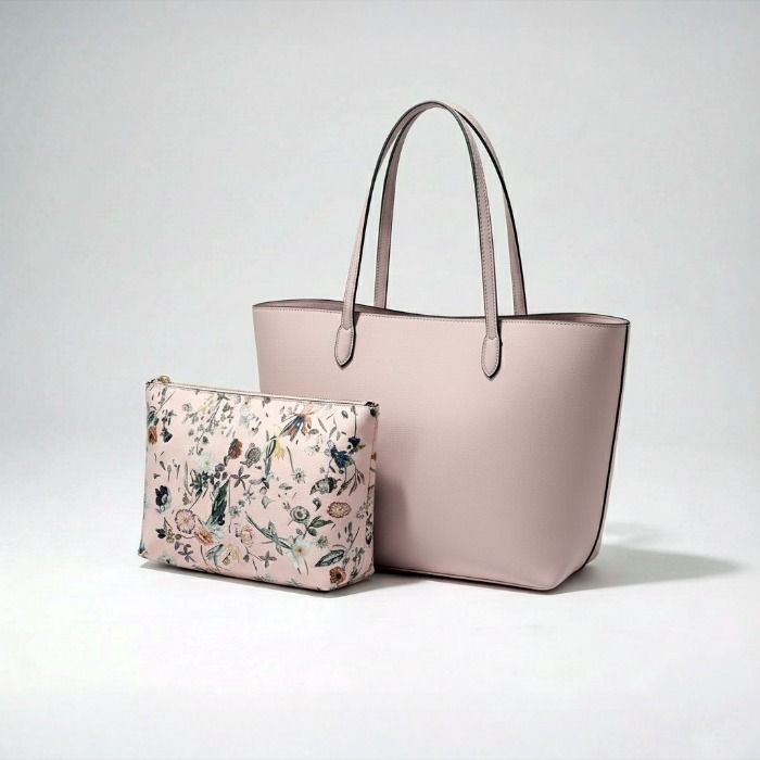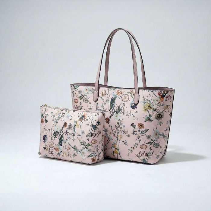 A 2-piece foil floral set featuring a reversible tote and a matching insert with a detachable shoulder strap. Stylish, lightweight, and perfect for everyday use.