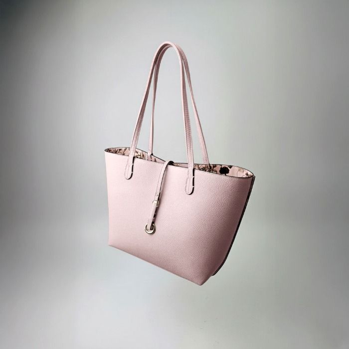 2-Piece Reversible Foil Floral Tote Set in Pink