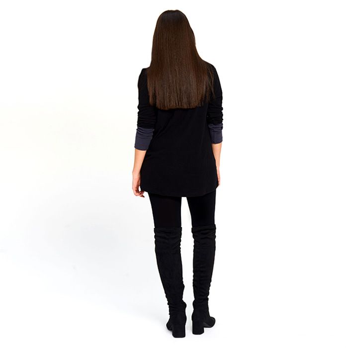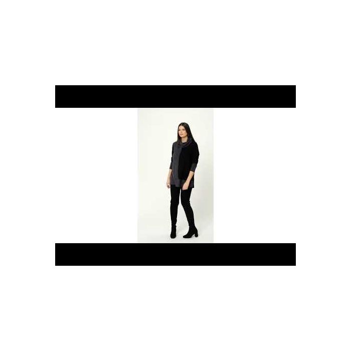 This sweater boasts a stylish contrast detailing and comes with a versatile scarf that can be worn in multiple ways. Stay warm and stylish all season long with this must-have ensemble.