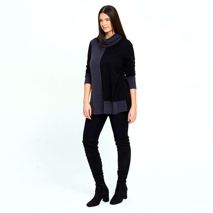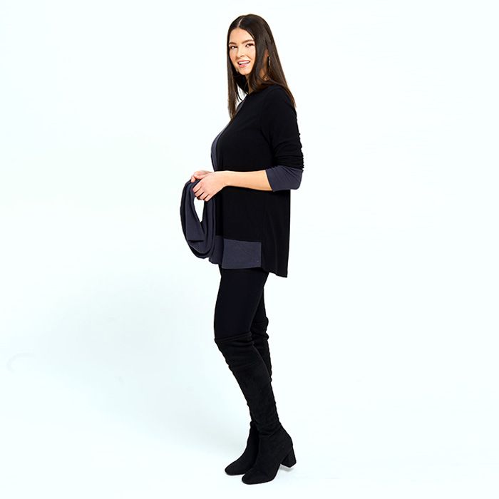Contrast Sweater with Removable Unity Scarf in Slate
