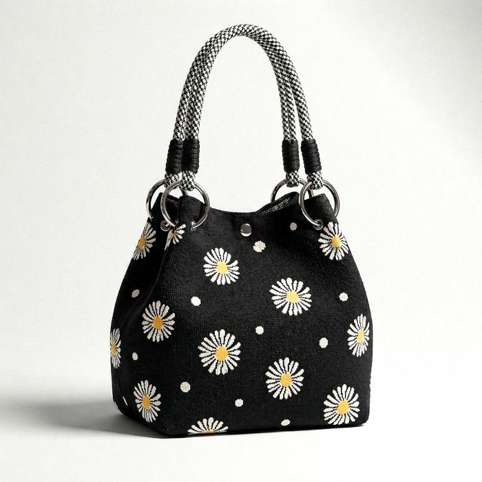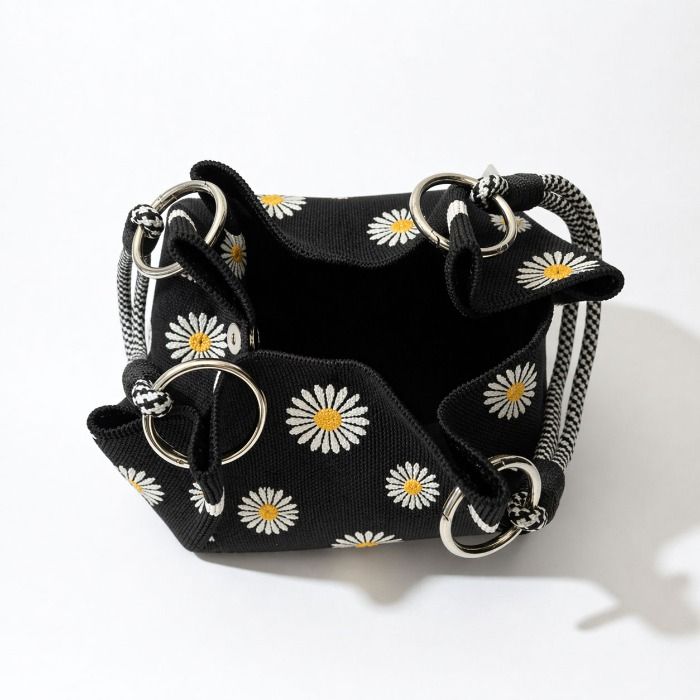 Chic and playful, this daisy pouch bag features a soft, structured shape and easy-carry handles. Lightweight and perfectly sized for daily essentials, it’s the ideal everyday accessory.