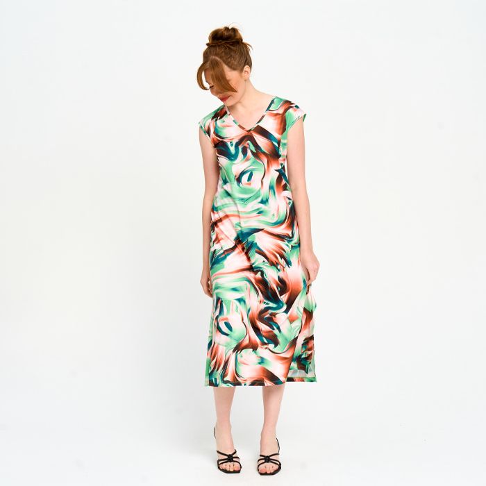 Step into style with this V-Neck dress—dynamic prints and a chic neckline for a look that's both bold and effortless.