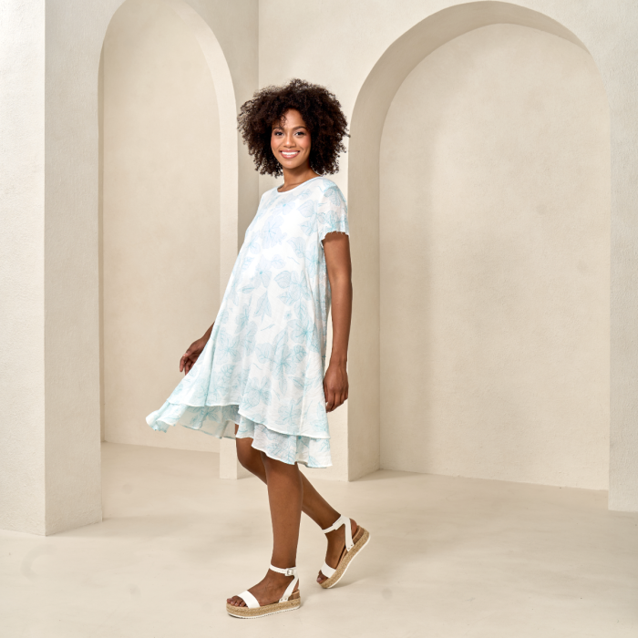 Double Layer Faux Linen-Like Dress in Turquoise