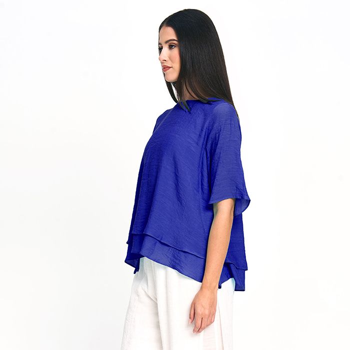A lightweight faux linen top designed with a layered look for easy sophistication. Soft and breathable with a relaxed fit, it’s the perfect piece for warm-weather days or effortless layering.