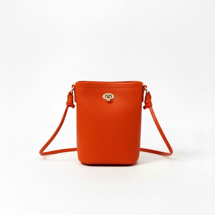 A compact, pebbled genuine leather crossbody featuring a sleek rounded silhouette, adjustable strap, and elegant gold twist-lock closure. Designed to keep your essentials secure and close at hand, it’s the perfect hands-free bag for everyday style and convenience.