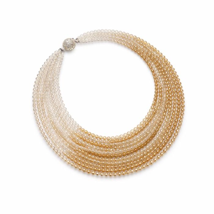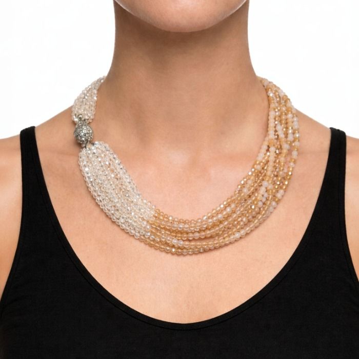 A sophisticated multi-strand necklace featuring a smooth ombré blend from luminous crystal to deep tones. Finished with a secure magnetic closure, it brings a modern, elegant edge to any look.