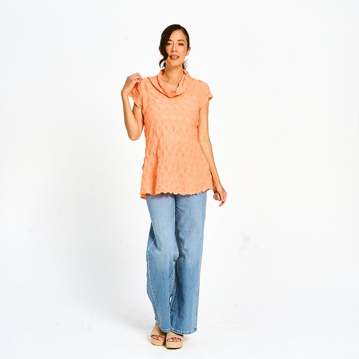 Light and breezy in a textured honeycomb fabric, this tunic features a relaxed cowl neck and easy length—your go-to for effortless spring style!