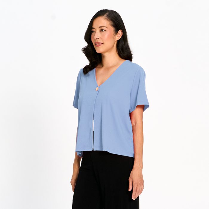 Jersette Single-Button Cardigan in Sky