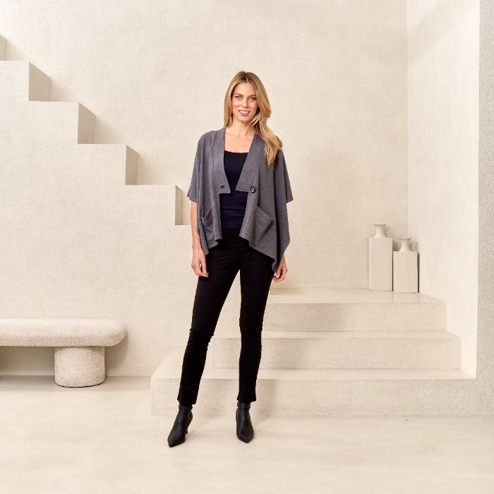 Kimono Topper with Button in Grey