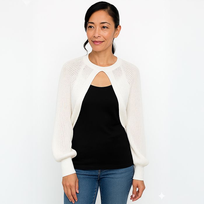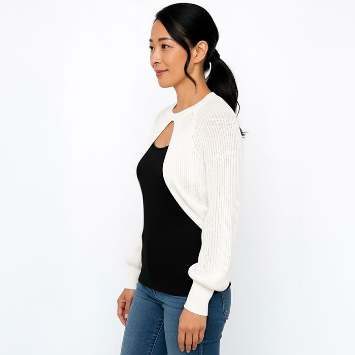 A versatile layering solution, this simple knit cover-up provides comfort and style for your arms.