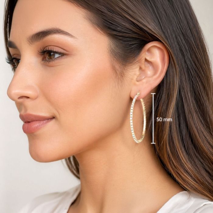 Large Rhinestone Hoop Earrings in Gold