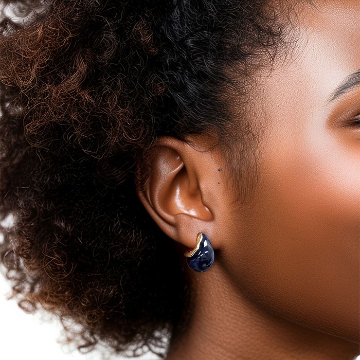 Marble Chunky Teardrop Earrings in Blue