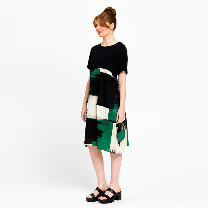 Make a statement in this patterned dress—bold prints and a relaxed fit for effortless, standout style.