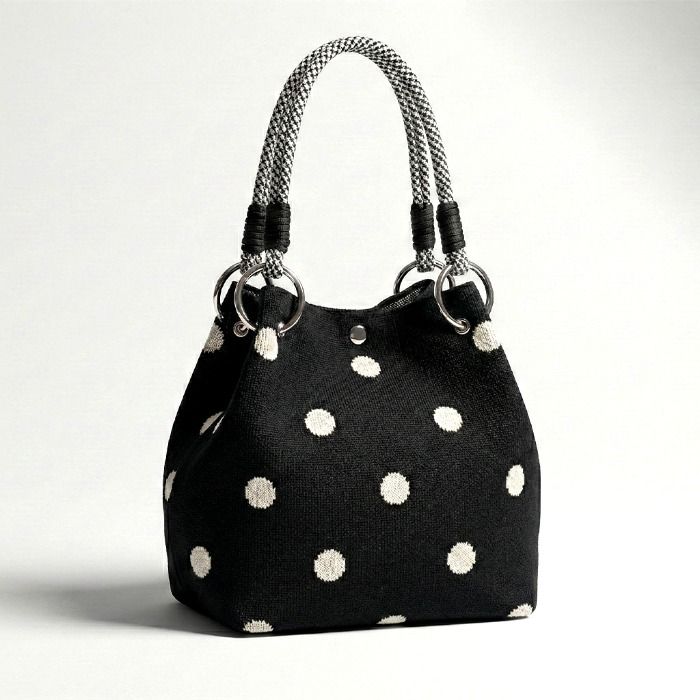 Chic and playful, this polka-dot bucket bag features a soft, structured shape and easy-carry handles. Lightweight and perfectly sized for daily essentials, it’s the ideal everyday accessory.