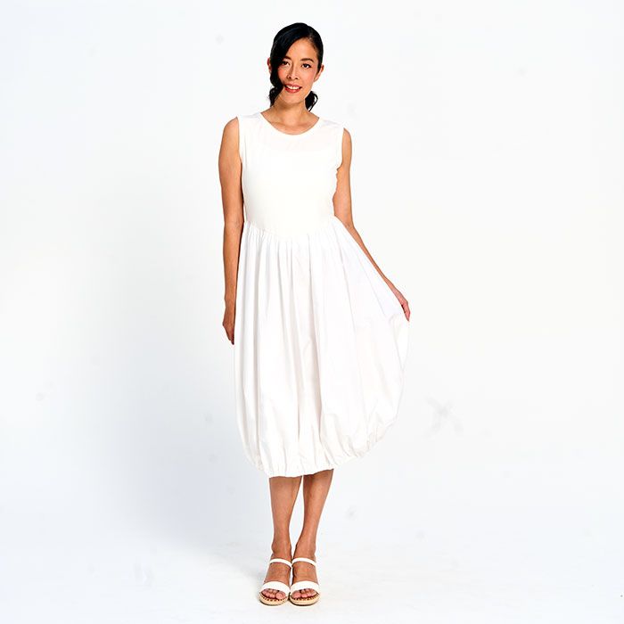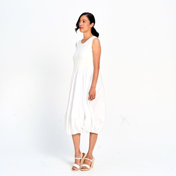 Chic and playful, this dress is made from lightweight poplin and features a flattering bubble silhouette. Its relaxed fit and subtle volume create a fun, flirty shape that’s perfect for casual days or dressed-up occasions.