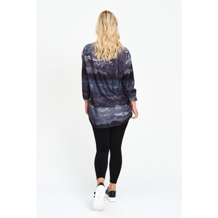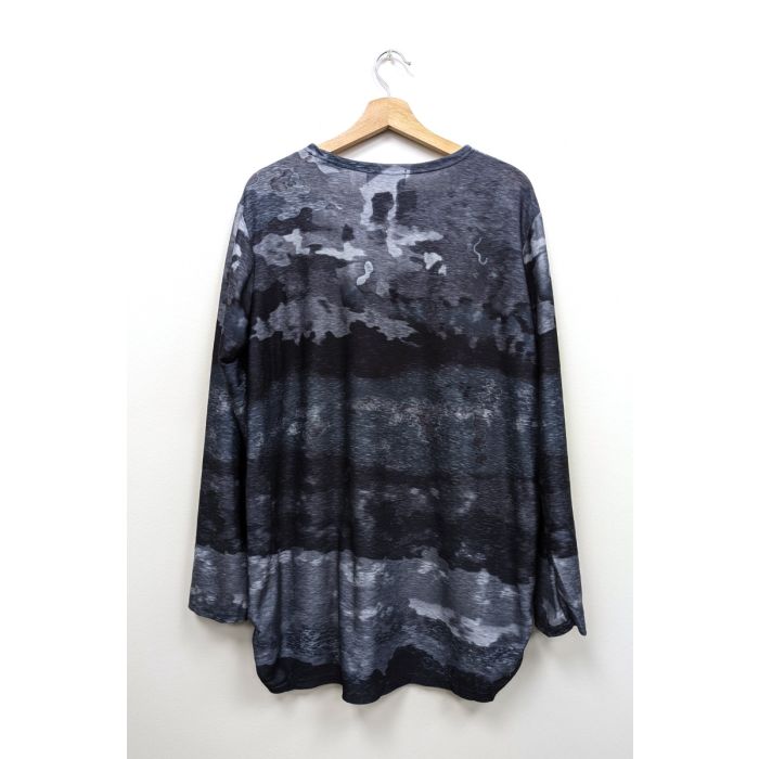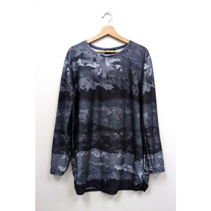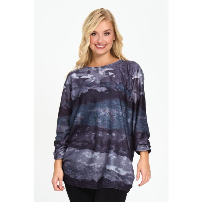 Our popular long-sleeved sweater tunic features a contemporary print. Pair this unique style with slim-leg pants to complete the look.