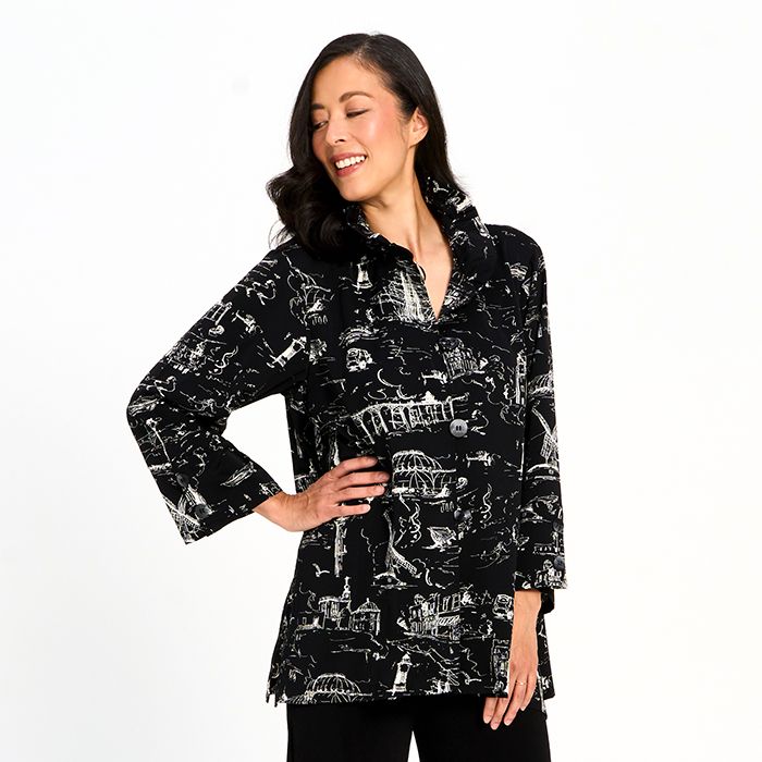 Graceful and refined, this top is a timeless piece with a delicate touch. Softly patterned and thoughtfully tailored, it features a wired collar that adds elegance and charm. Light and flattering, it’s perfect for creating romantic, polished looks that transition seamlessly from day to night.