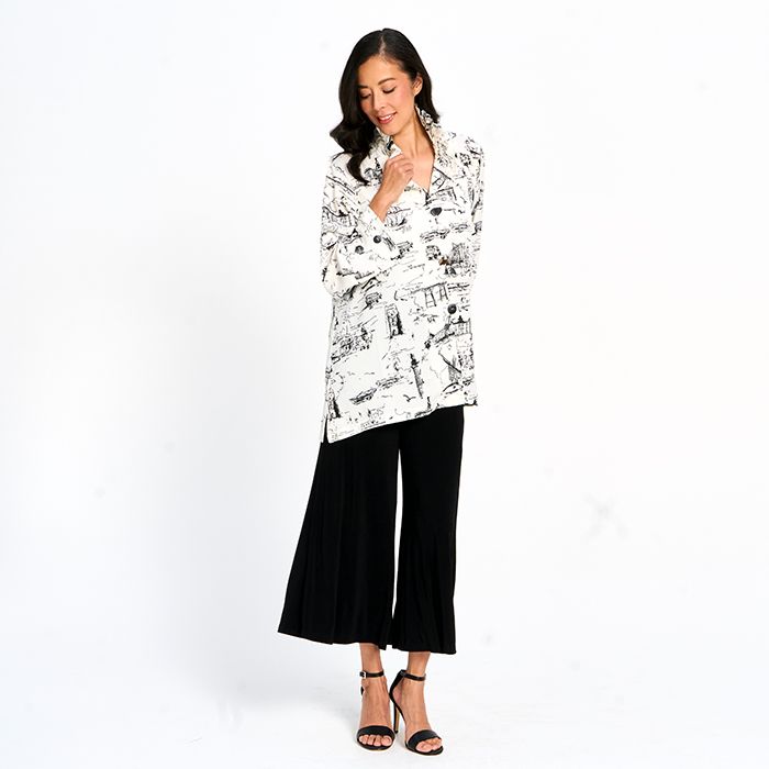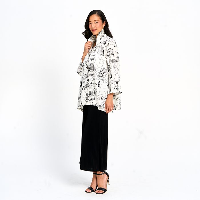 Printed Button Down Top with Wired Collar in White