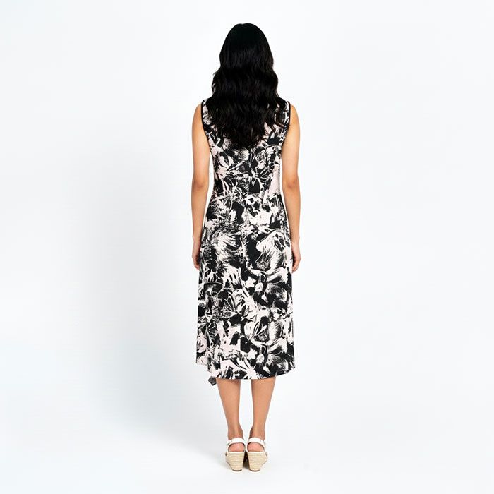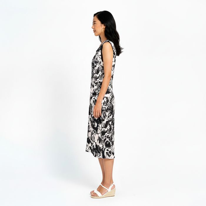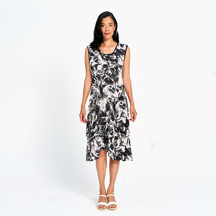 Printed Layered Midi Dress in Black & White