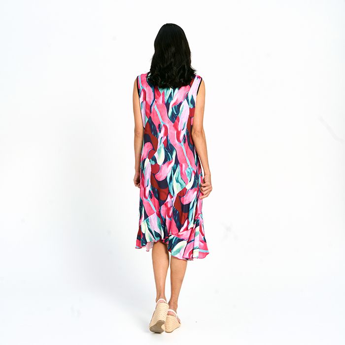 Printed Layered Midi Dress in Fuchsia