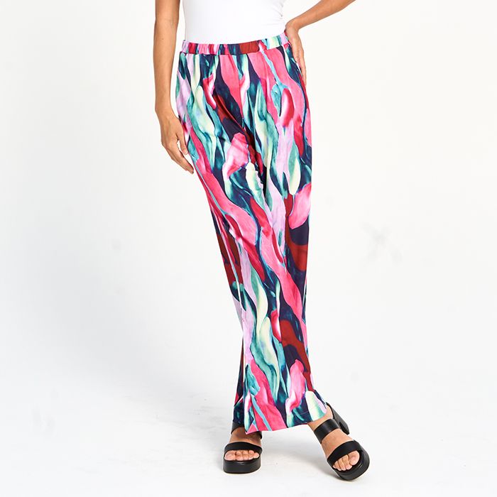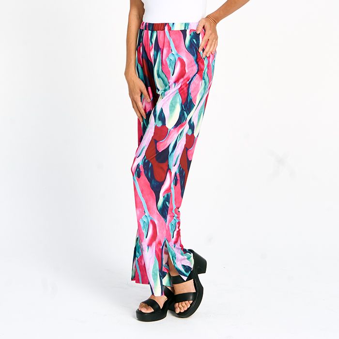 Gracefully chic, these lightweight wide-leg pants feature a playful slit and delicate print. Soft colour tones make them perfect for both casual and dressy looks.