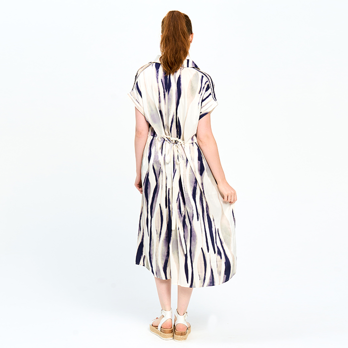 Float through your day this dress—luxurious fabric and a chic tie-back for effortless elegance.