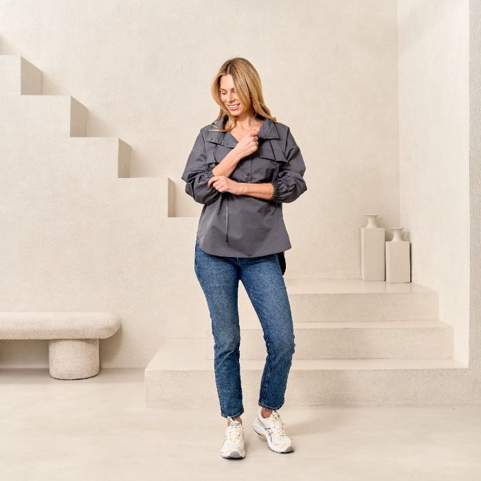 Snap Front Pullover Jacket in Grey