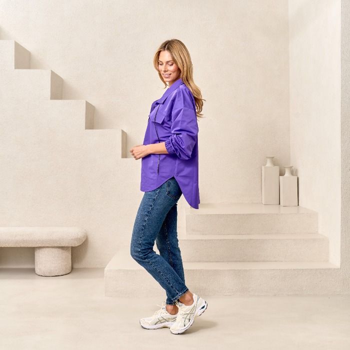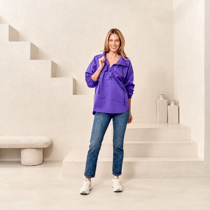 Snap Front Pullover Jacket in Purple
