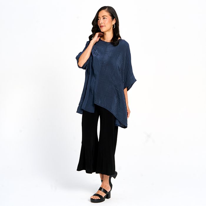 Made from soft-touch crinkle fabric, this top features a modern asymmetrical hem that adds movement and style. Lightweight and effortless, it’s perfect for pairing with your favourite pants or skirts for an elevated everyday look.