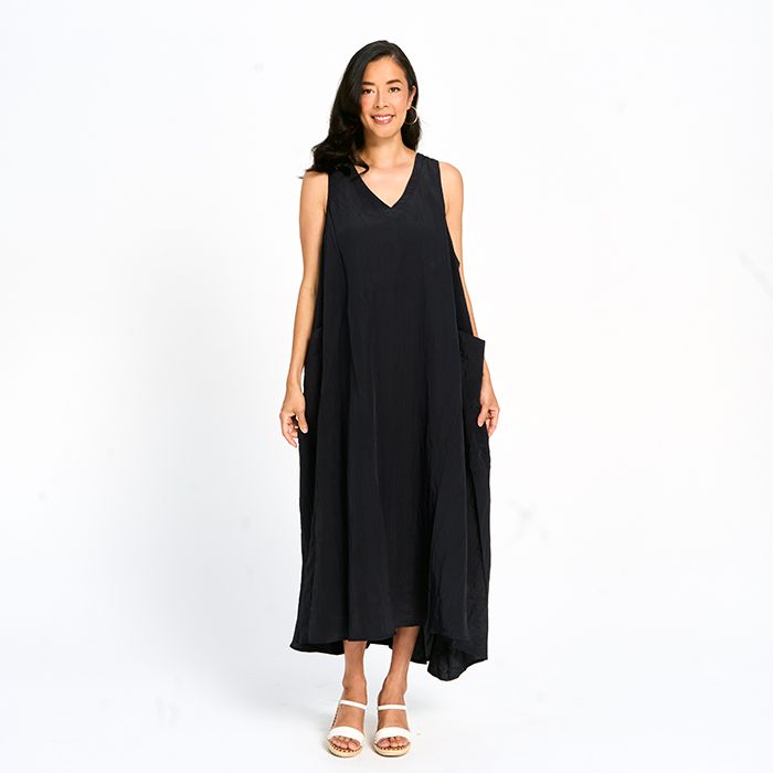 Soft Touch Crinkle Sleeveless Dress in Black