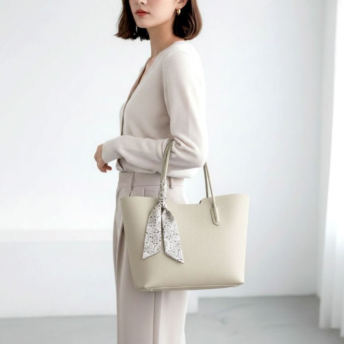 A chic 2-piece tote set featuring a structured handbag accented with a printed twilly scarf and a matching crossbody insert. Lightweight, stylish, and versatile—carry the tote on its own or wear the insert as a hands-free bag. Perfect for everyday use.