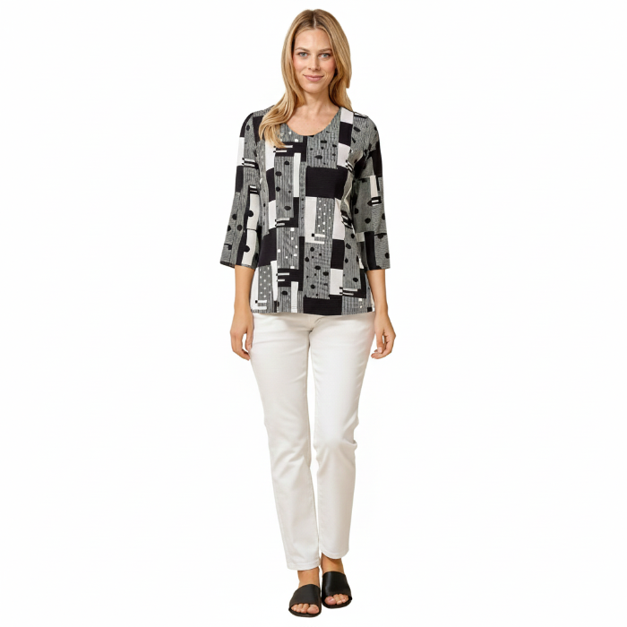 Venechia Pleated Top in Black and White
